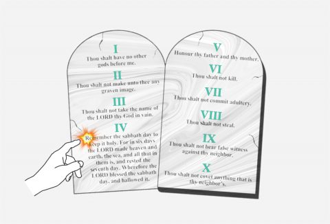(4) Remember the sabbath day, to keep it holy. Six days shalt thou labour, and do all thy work: But the seventh day is the sabbath of the Lord thy God: in it thou shalt not do any work, thou, nor thy son, nor thy daughter, thy manservant, nor thy maidservant, nor thy cattle, nor thy stranger that is within thy gates: For in six days the Lord made heaven and earth, the sea, and all that in them is, and rested the seventh day: wherefore the Lord blessed the sabbath day, and hallowed it. (Exodus 20:8-11)